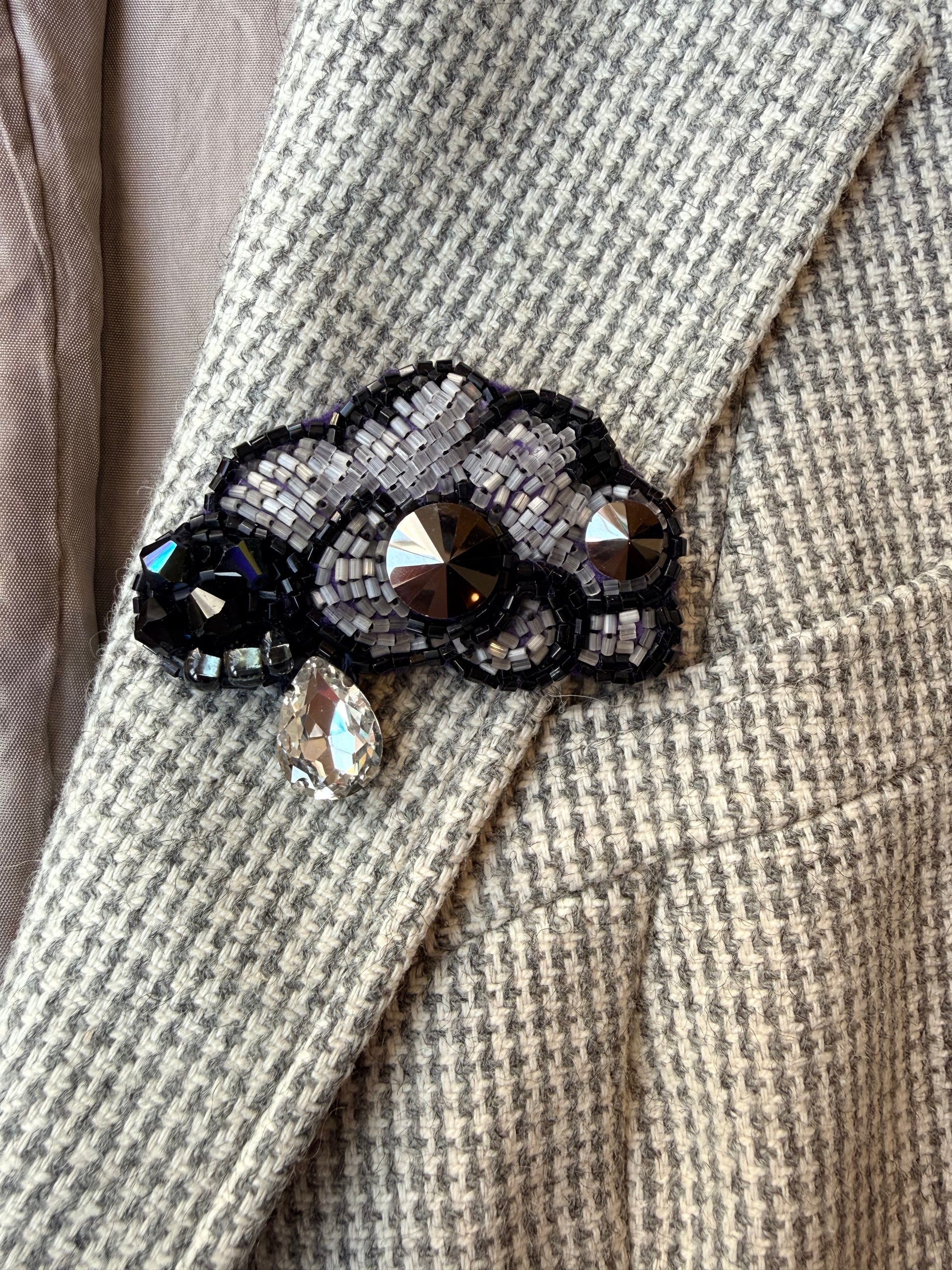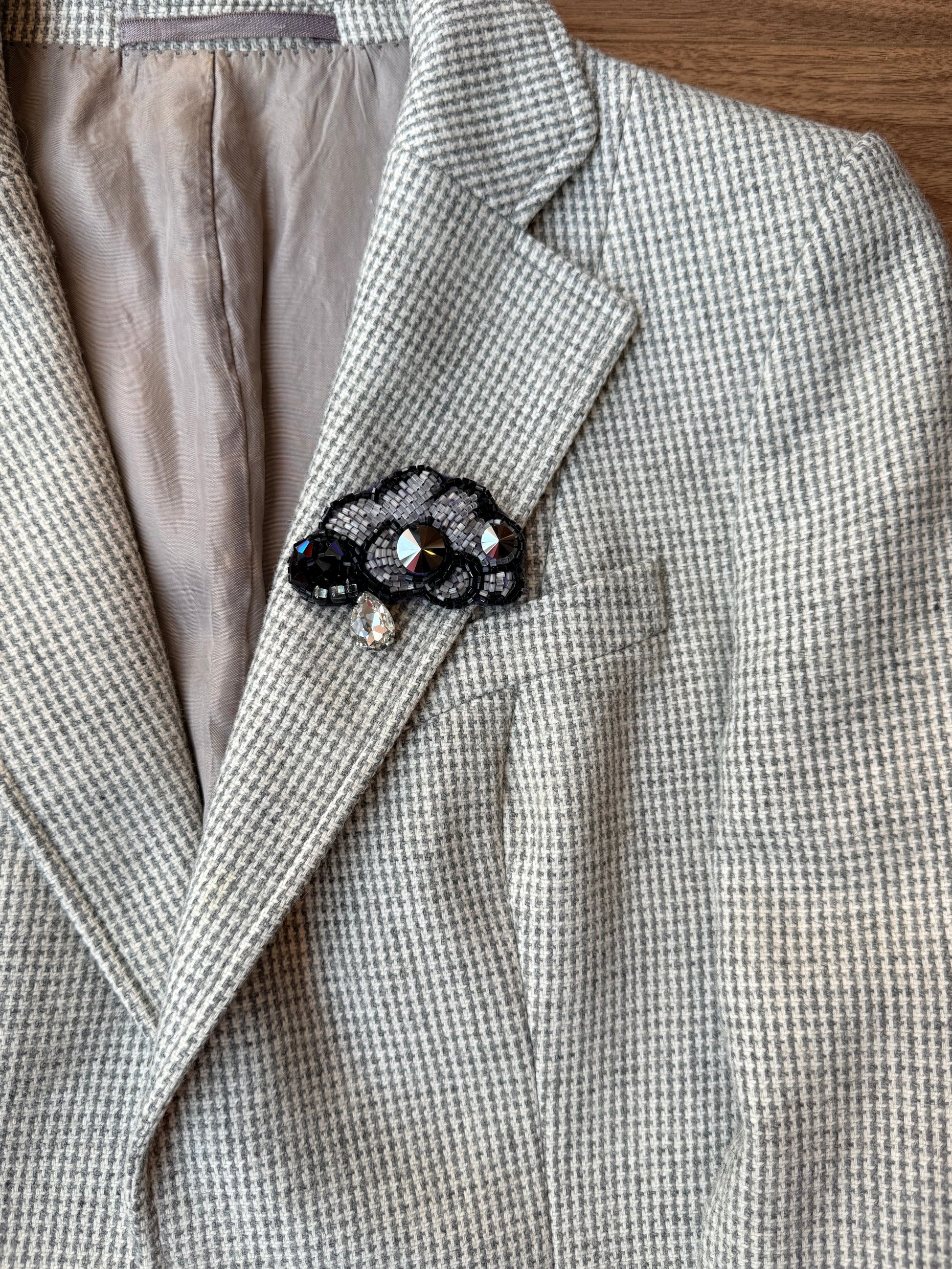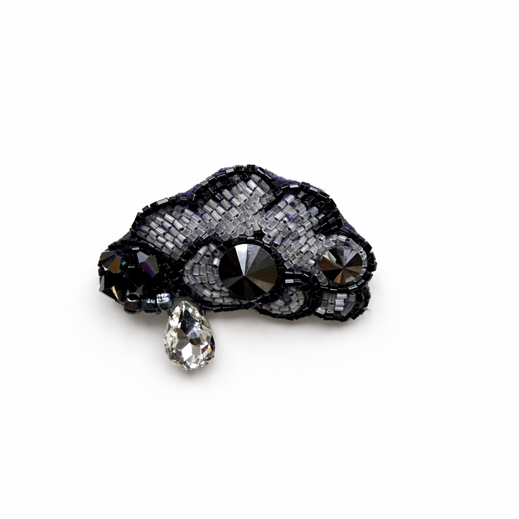 Broszka „Czarna Chmurka” to ręcznie wykonana biżuteria w jednym, niepowtarzalnym egzemplarzu.
