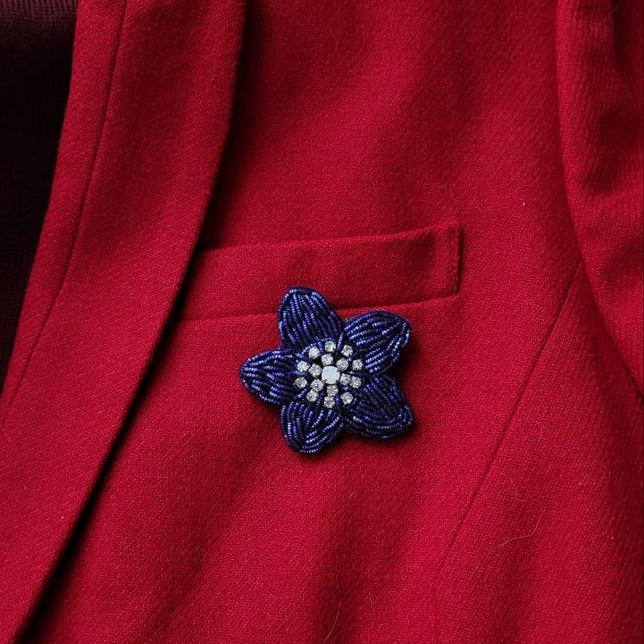 Subtelny połysk, głęboki odcień granatu i biżuteryjne wykończenie sprawiają, że broszka pięknie ożywia marynarkę, sweter lub płaszcz