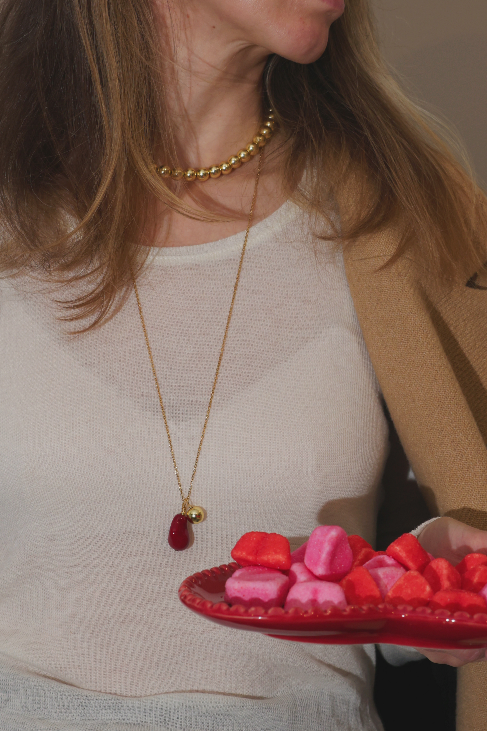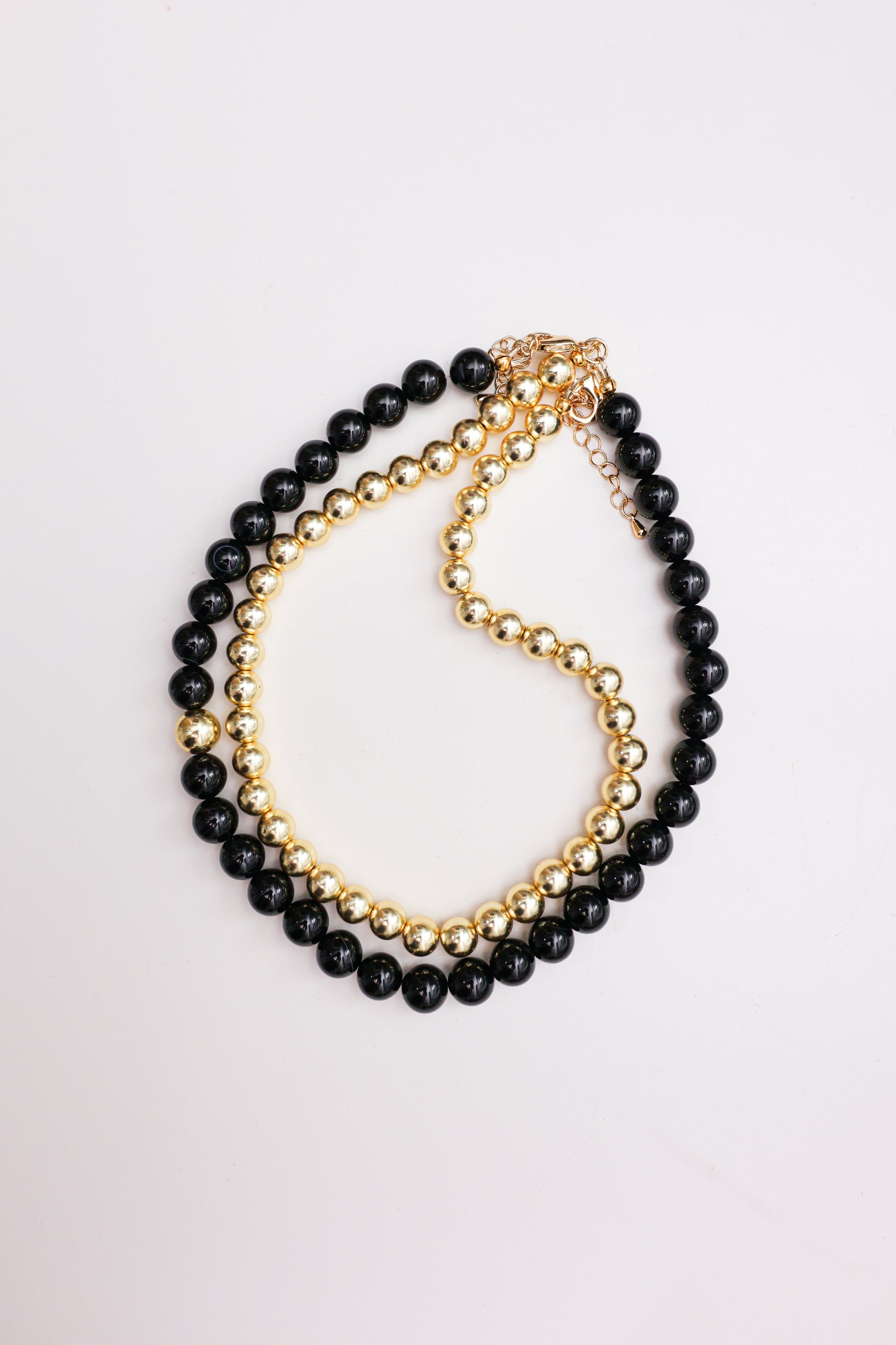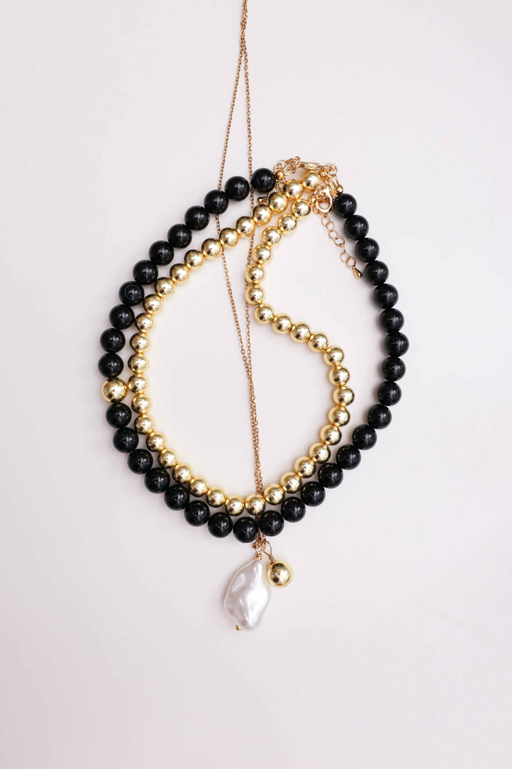 Naszyjnik wykonany z pozłacanego hematytu oraz wykończony pozłacaną 18-karatową furrniturą.