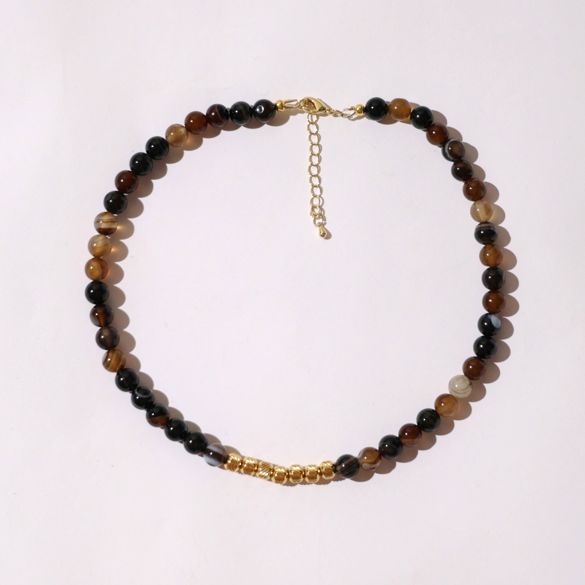 Витончене й глибоке — це намисто поєднує соколине око й агат із теплими відблисками позолочених елементів, створюючи гармонійний баланс сили й ніжності.